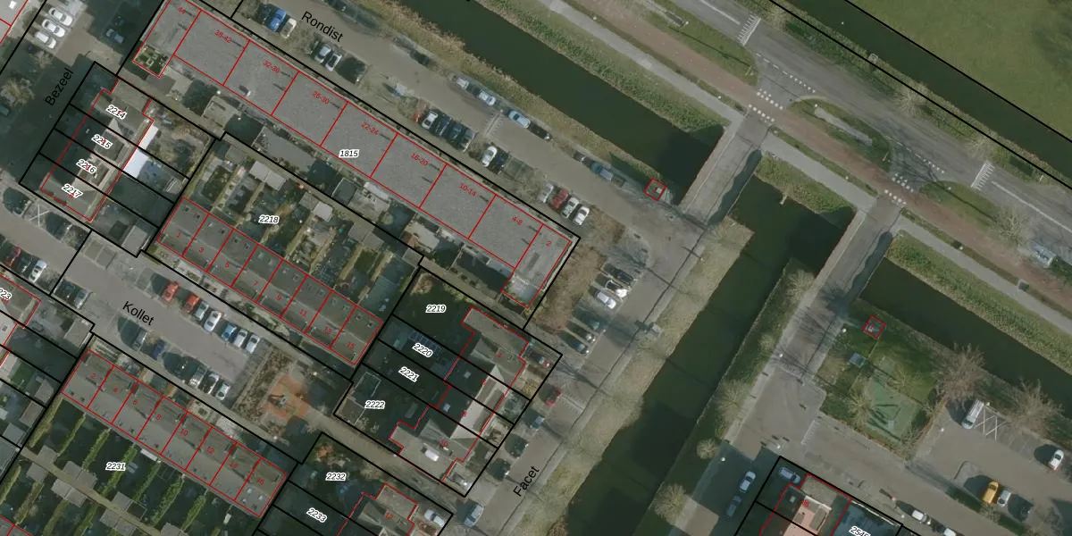 Het adres is gelegen op perceel 1815 in de sectie B en de kadastrale gemeente Rhoon. De kadastrale aanduiding is aldus RHO00-B-1815. Het perceel is 1730 m² groot. Dat is kleiner dan de gemiddelde perceeloppervlakte in Rhoon, dat op 2330,1 m² ligt. Het grootste perceel in de kadastrale gemeente is 42,1 ha. Het kleinste perceel heeft een oppervlakte van 0 m². Op het perceel zijn 22 adressen aanwezig. In de Basisregistratie Kadaster (BRK) werden de grenzen van het perceel geregistreerd op 11-11-2010.