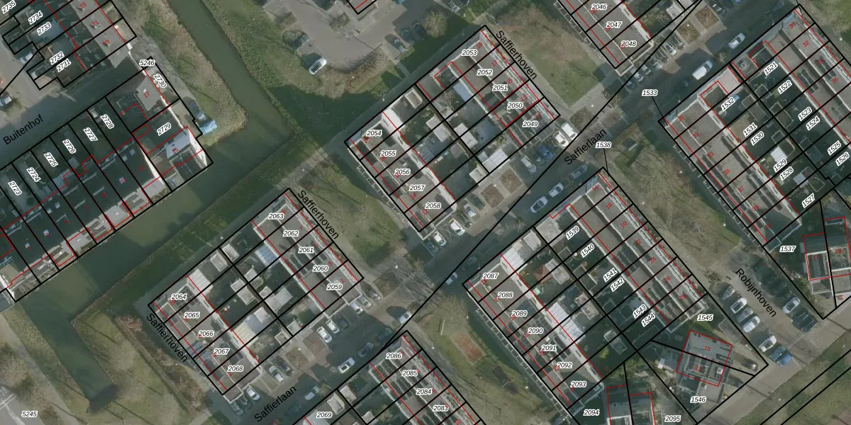 Saffierhoven 12 is gelegen op kadastraal perceel RHO00B2058. Deze kadastrale aanduiding is uniek en wordt gebruikt door het Kadaster om eigendomsrechten en andere zakelijke rechten vast te leggen. Het perceel maakt onderdeel uit van de kadastrale gemeente Rhoon.