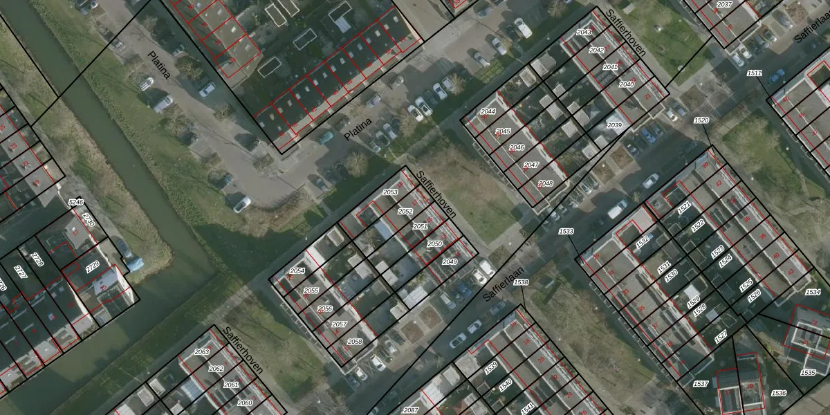 Gebruik de zoekbalk of klik op een perceel voor informatie over de adressen binnen dit perceel.