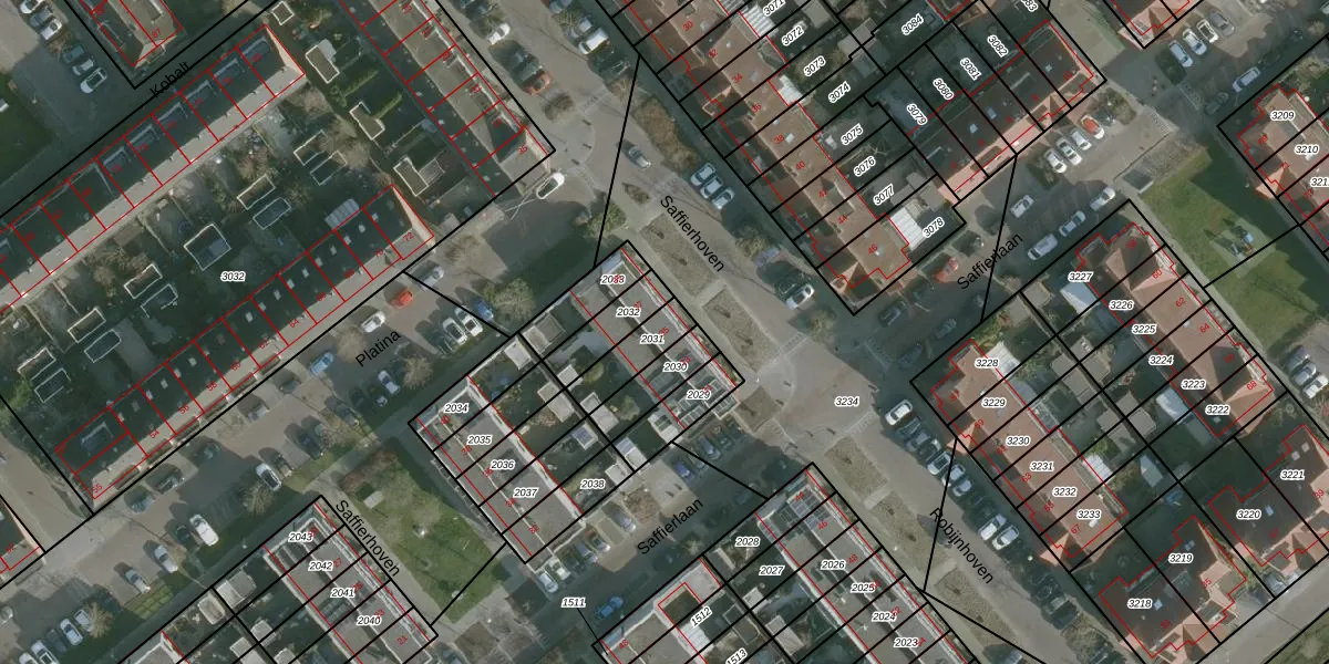 Gebruik de zoekbalk of klik op een perceel voor informatie over de adressen binnen dit perceel.