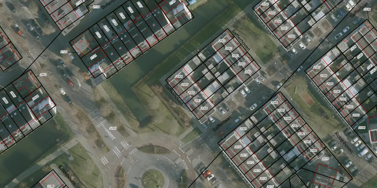 Saffierhoven 6 is gelegen op kadastraal perceel RHO00B2066. Deze kadastrale aanduiding is uniek en wordt gebruikt door het Kadaster om eigendomsrechten en andere zakelijke rechten vast te leggen. Het perceel maakt onderdeel uit van de kadastrale gemeente Rhoon.
