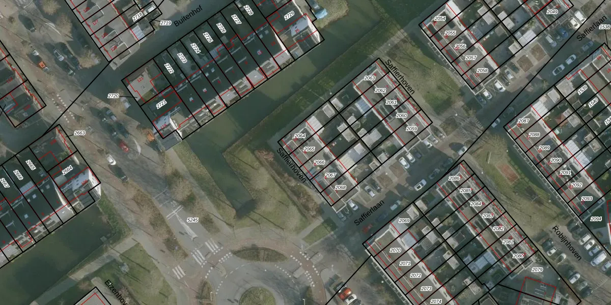 Saffierhoven 8 is gelegen op kadastraal perceel RHO00B2065. Deze kadastrale aanduiding is uniek en wordt gebruikt door het Kadaster om eigendomsrechten en andere zakelijke rechten vast te leggen. Het perceel maakt onderdeel uit van de kadastrale gemeente Rhoon.