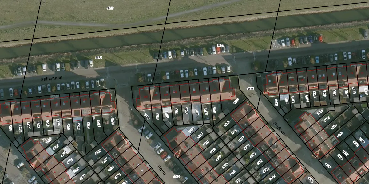 Saffierlaan 100 is gelegen op kadastraal perceel RHO00B3109. Deze kadastrale aanduiding is uniek en wordt gebruikt door het Kadaster om eigendomsrechten en andere zakelijke rechten vast te leggen. Het perceel maakt onderdeel uit van de kadastrale gemeente Rhoon.