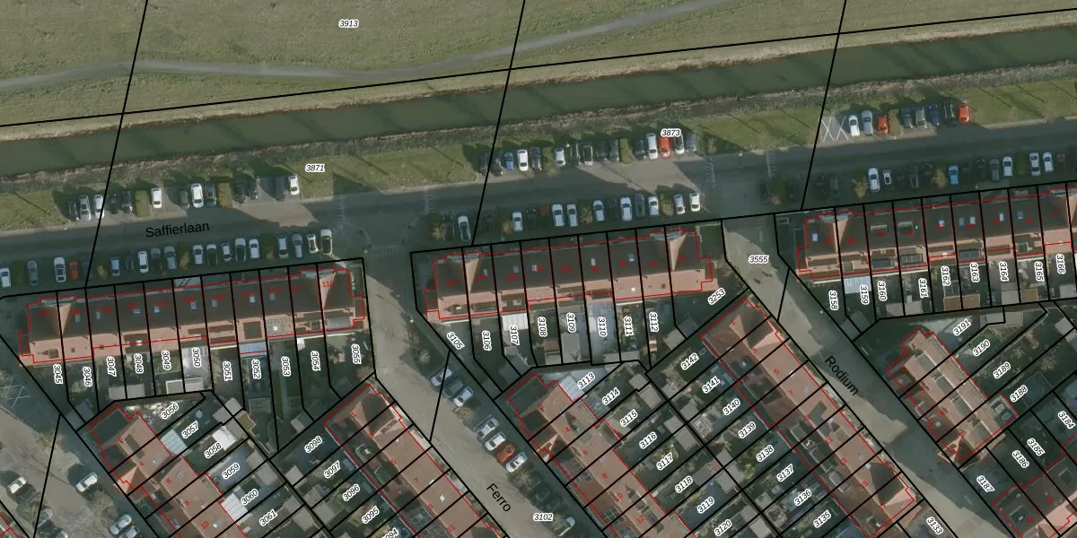 Saffierlaan 102 is gelegen op kadastraal perceel RHO00B3108. Deze kadastrale aanduiding is uniek en wordt gebruikt door het Kadaster om eigendomsrechten en andere zakelijke rechten vast te leggen. Het perceel maakt onderdeel uit van de kadastrale gemeente Rhoon.