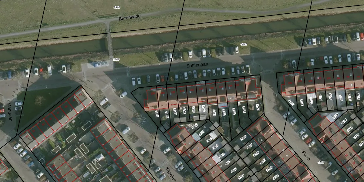 Gebruik de zoekbalk of klik op een perceel voor informatie over de adressen binnen dit perceel.