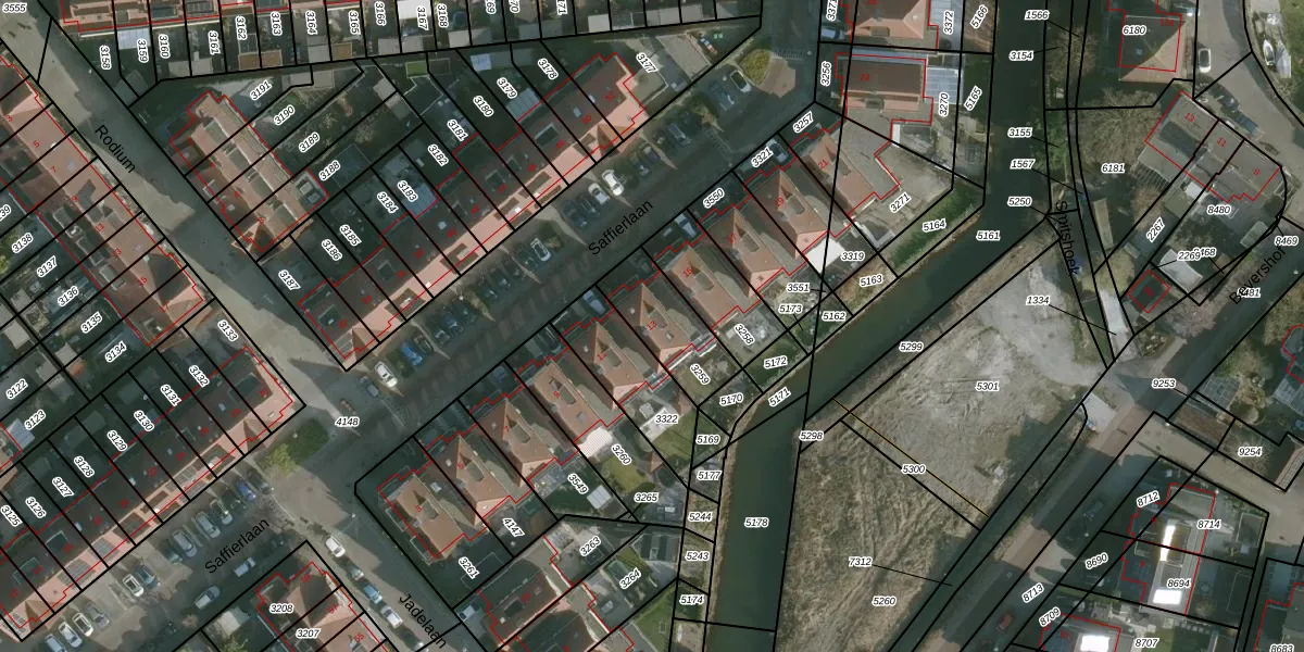 Gebruik de zoekbalk of klik op een perceel voor informatie over de adressen binnen dit perceel.