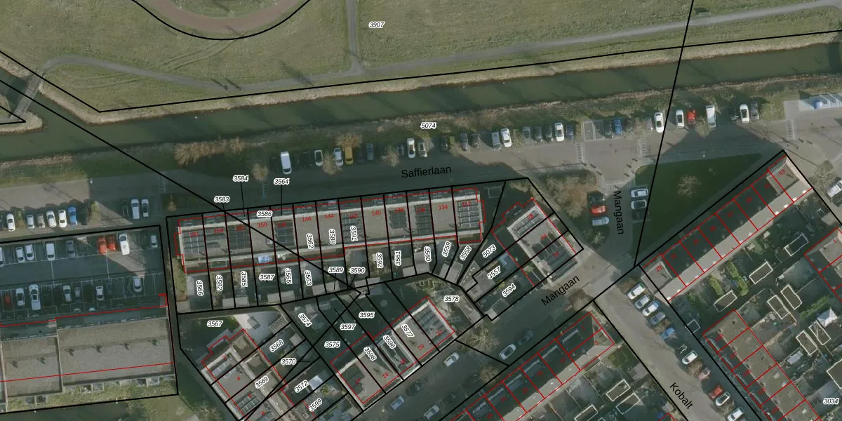 Saffierlaan 136 is gelegen op kadastraal perceel RHO00B3560. Deze kadastrale aanduiding is uniek en wordt gebruikt door het Kadaster om eigendomsrechten en andere zakelijke rechten vast te leggen. Het perceel maakt onderdeel uit van de kadastrale gemeente Rhoon.