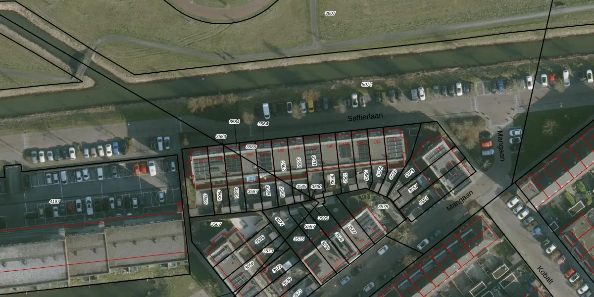 Gebruik de zoekbalk of klik op een perceel voor informatie over de adressen binnen dit perceel.
