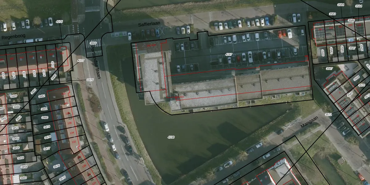 Saffierlaan 216 is gelegen op kadastraal perceel RHO00B4197. Deze kadastrale aanduiding is uniek en wordt gebruikt door het Kadaster om eigendomsrechten en andere zakelijke rechten vast te leggen. Het perceel maakt onderdeel uit van de kadastrale gemeente Rhoon.