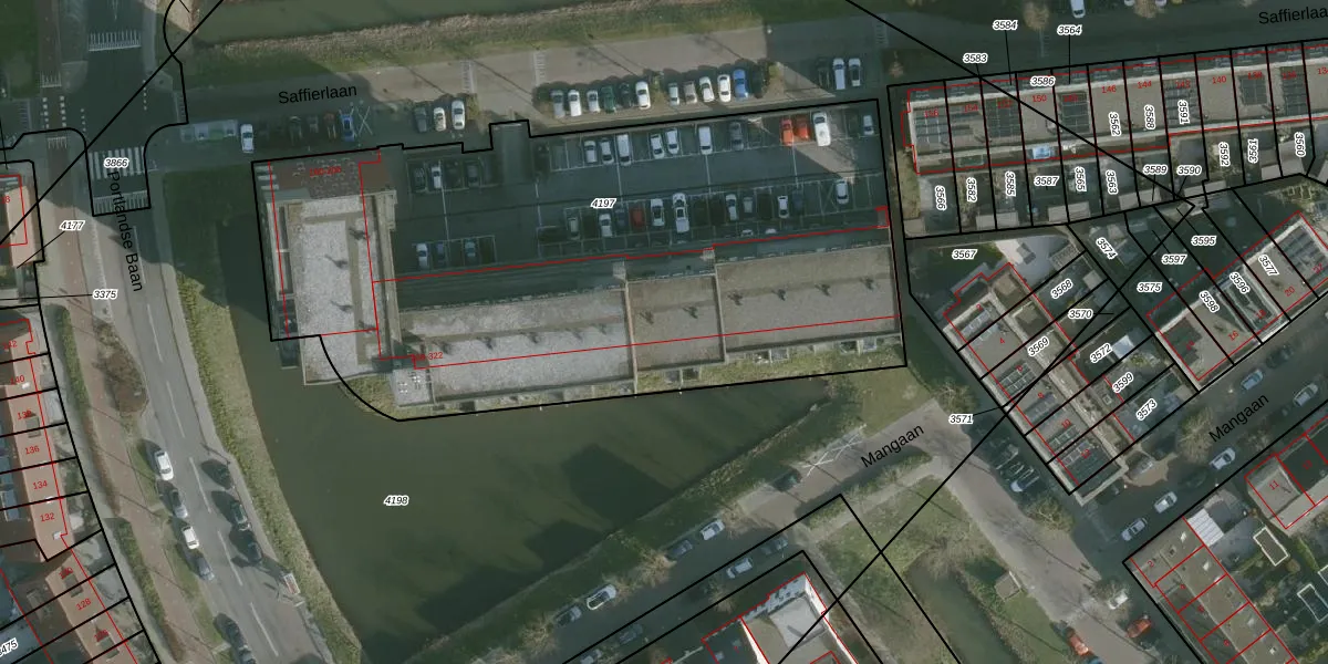 Saffierlaan 274 is gelegen op kadastraal perceel RHO00B4197. Deze kadastrale aanduiding is uniek en wordt gebruikt door het Kadaster om eigendomsrechten en andere zakelijke rechten vast te leggen. Het perceel maakt onderdeel uit van de kadastrale gemeente Rhoon.