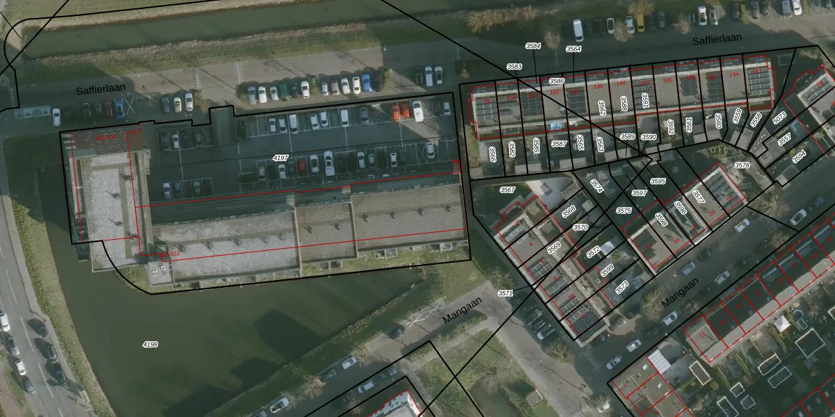 Saffierlaan 312 is gelegen op kadastraal perceel RHO00B4197. Deze kadastrale aanduiding is uniek en wordt gebruikt door het Kadaster om eigendomsrechten en andere zakelijke rechten vast te leggen. Het perceel maakt onderdeel uit van de kadastrale gemeente Rhoon.