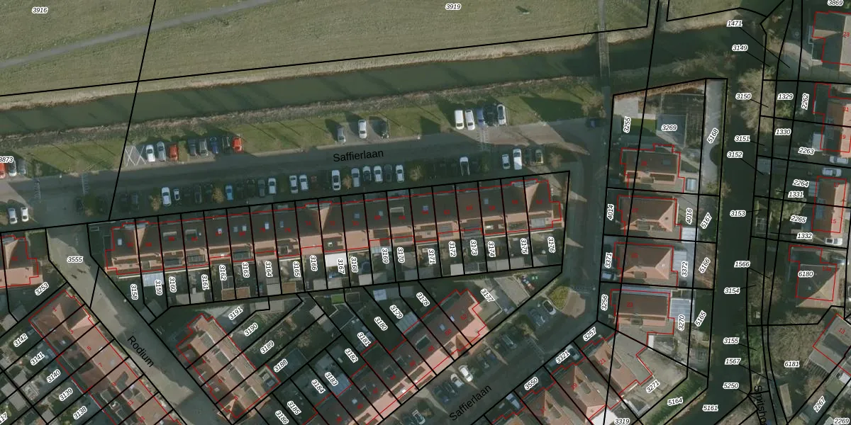 Saffierlaan 64 is gelegen op kadastraal perceel RHO00B3171. Deze kadastrale aanduiding is uniek en wordt gebruikt door het Kadaster om eigendomsrechten en andere zakelijke rechten vast te leggen. Het perceel maakt onderdeel uit van de kadastrale gemeente Rhoon.