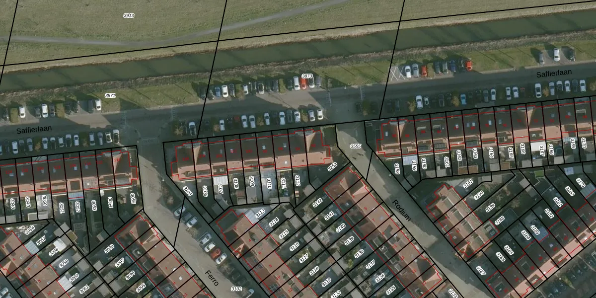 Gebruik de zoekbalk of klik op een perceel voor informatie over de adressen binnen dit perceel.