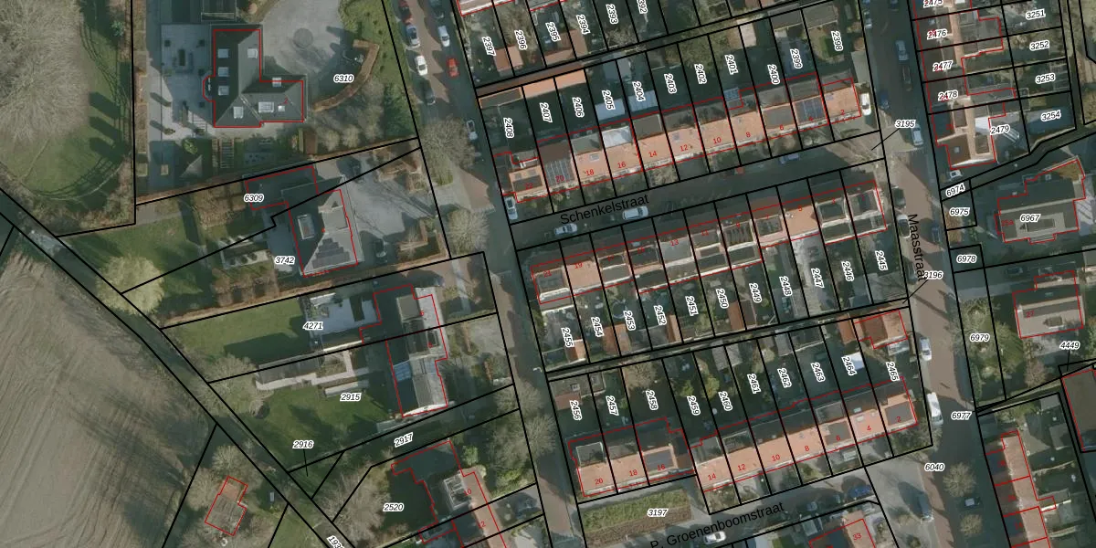 Schenkelstraat 21 is gelegen op kadastraal perceel RHO00A2455. Deze kadastrale aanduiding is uniek en wordt gebruikt door het Kadaster om eigendomsrechten en andere zakelijke rechten vast te leggen. Het perceel maakt onderdeel uit van de kadastrale gemeente Rhoon.