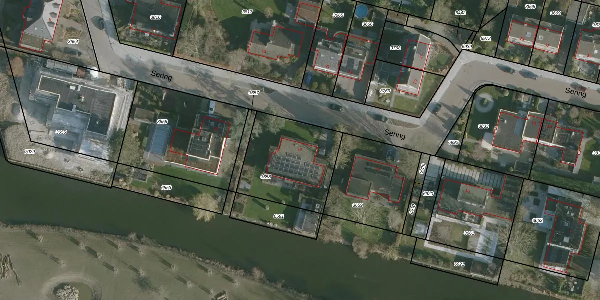 Het perceel waarop Sering 12 staat heeft een oppervlakte van 841 m². Dit is een groot perceel. De perceeloppervlakte wordt geregistreerd door het Kadaster. Gedetailleerde informatie over de maten van dit perceel kunt u vinden in het rapport Kadastrale kaart met maatvoering van Sering 12.
