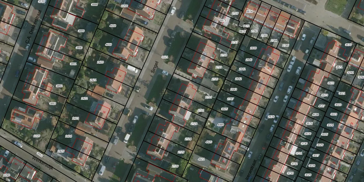 Het perceel waarop Singel 17 staat heeft een oppervlakte van 258 m². Dit is een middelgroot perceel. De perceeloppervlakte wordt geregistreerd door het Kadaster. Gedetailleerde informatie over de maten van dit perceel kunt u vinden in het rapport Kadastrale kaart met maatvoering van Singel 17.