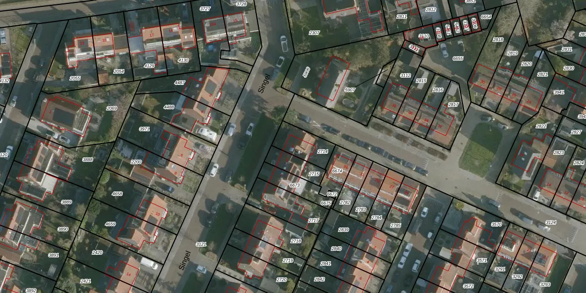 Het perceel waarop Singel 3 staat heeft een oppervlakte van 186 m². Dit is een middelgroot perceel. De perceeloppervlakte wordt geregistreerd door het Kadaster. Gedetailleerde informatie over de maten van dit perceel kunt u vinden in het rapport Kadastrale kaart met maatvoering van Singel 3.