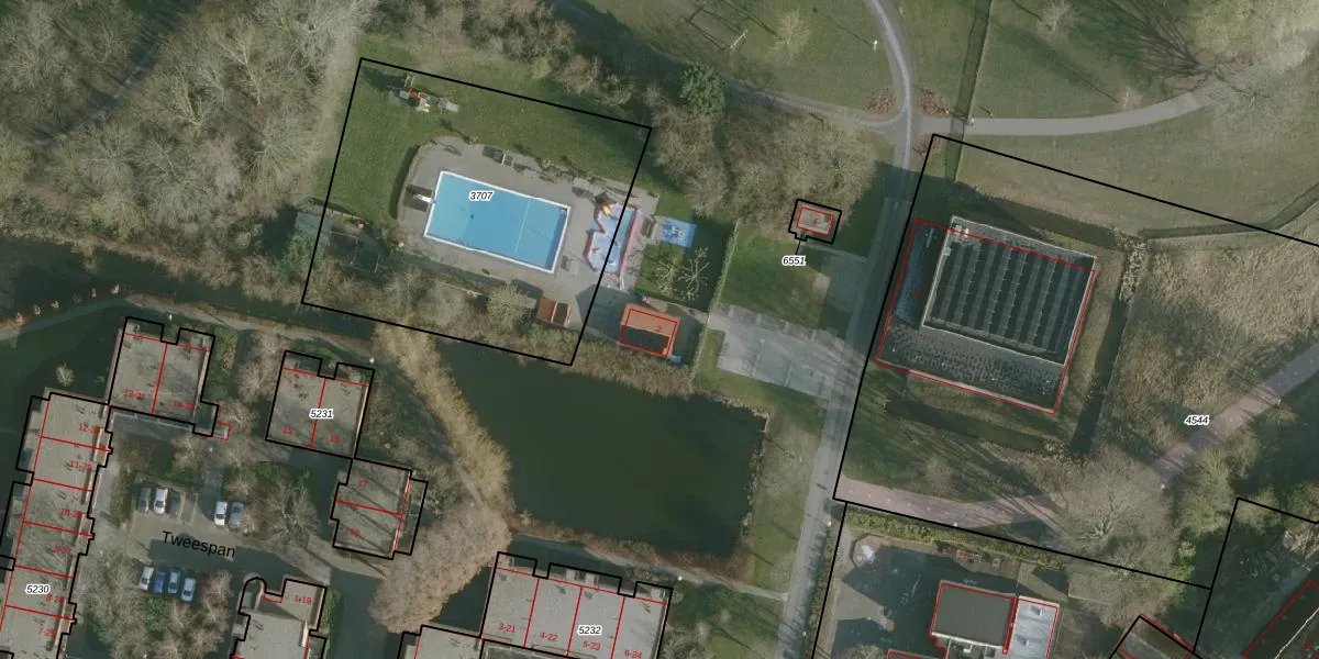 Het perceel waarop Sportlaan 2 staat heeft een oppervlakte van 9,2 ha. Dit is een zeer groot perceel. De perceeloppervlakte wordt geregistreerd door het Kadaster. Gedetailleerde informatie over de maten van dit perceel kunt u vinden in het rapport Kadastrale kaart met maatvoering van Sportlaan 2.