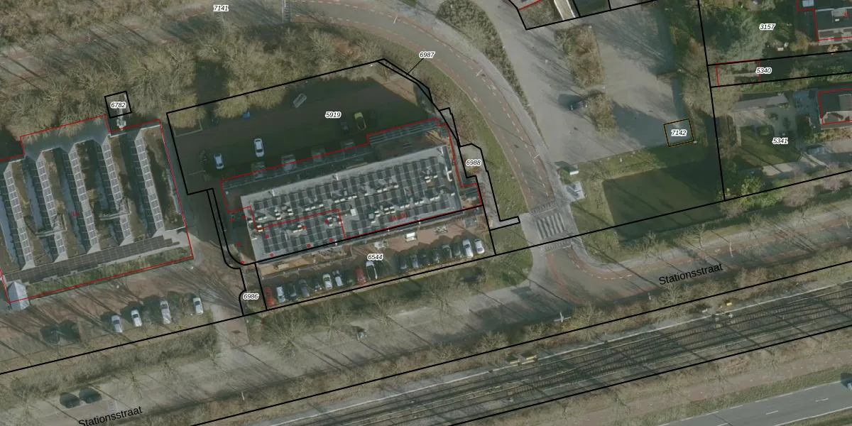 Het perceel waarop Stationsstraat 30 staat heeft een oppervlakte van 2290 m². Dit is een zeer groot perceel. De perceeloppervlakte wordt geregistreerd door het Kadaster. Gedetailleerde informatie over de maten van dit perceel kunt u vinden in het rapport Kadastrale kaart met maatvoering van Stationsstraat 30.