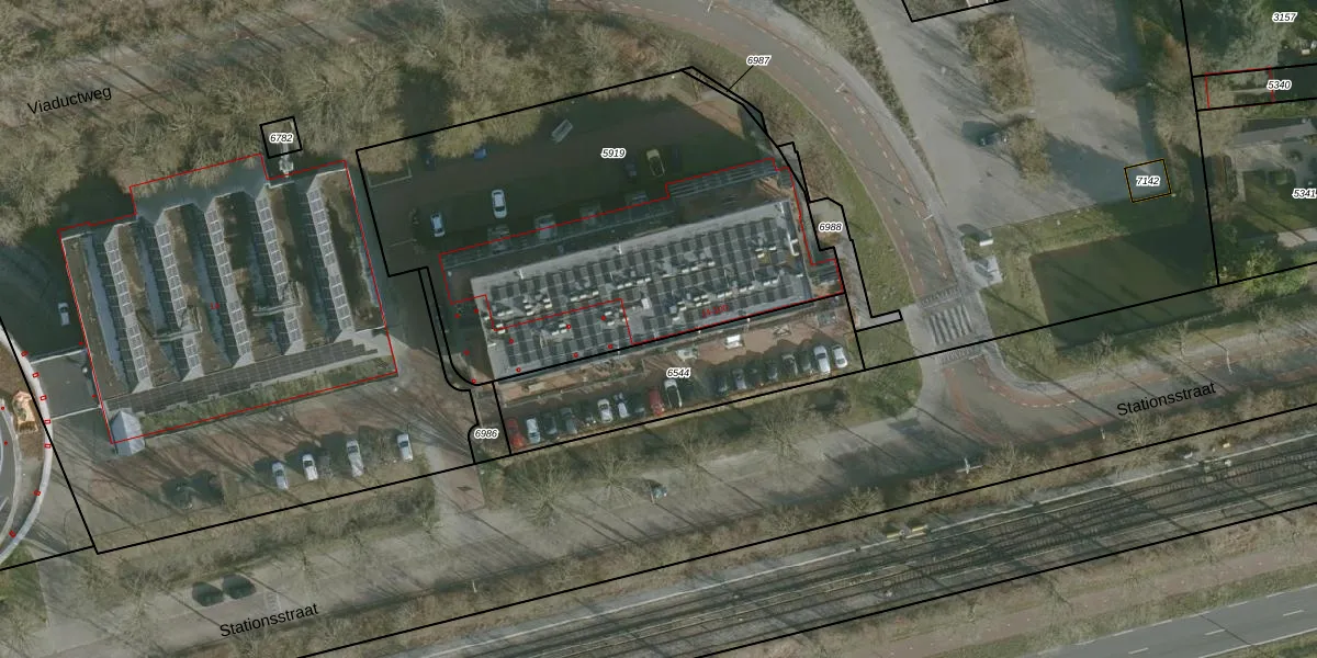 Het perceel waarop Stationsstraat 34 staat heeft een oppervlakte van 2290 m². Dit is een zeer groot perceel. De perceeloppervlakte wordt geregistreerd door het Kadaster. Gedetailleerde informatie over de maten van dit perceel kunt u vinden in het rapport Kadastrale kaart met maatvoering van Stationsstraat 34.