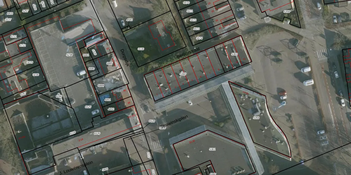 Strawinskiplein 3 is gelegen op kadastraal perceel RHO00A5360. Deze kadastrale aanduiding is uniek en wordt gebruikt door het Kadaster om eigendomsrechten en andere zakelijke rechten vast te leggen. Het perceel maakt onderdeel uit van de kadastrale gemeente Rhoon.
