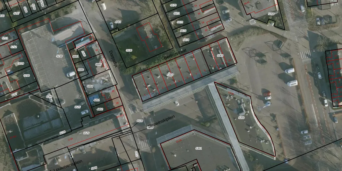 Het adres ligt op het perceel RHO00-A-5360, dat zich in de kadastrale gemeente Rhoon bevindt. Het perceel is kleiner dan gemiddeld in Rhoon. Het perceel is 708 m² groot, terwijl het gemiddelde ligt op 2337,2 m². Het grootste perceel in de kadastrale gemeente is 42,1 ha. Het kleinste perceel heeft een oppervlakte van 0 m². Op het perceel zijn 8 adressen aanwezig. De laatste wijziging in het de Basisregistratie Kadaster (BRK) was op 07-07-2010.