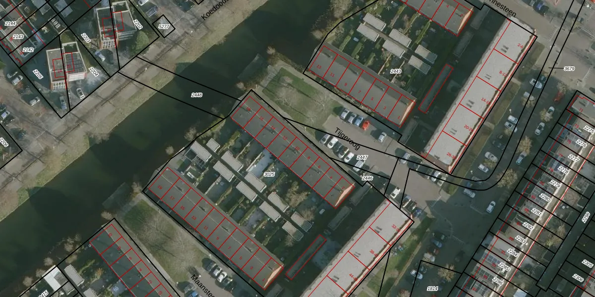 Tijgeroog 10 is gelegen op kadastraal perceel RHO00B3025. Deze kadastrale aanduiding is uniek en wordt gebruikt door het Kadaster om eigendomsrechten en andere zakelijke rechten vast te leggen. Het perceel maakt onderdeel uit van de kadastrale gemeente Rhoon.