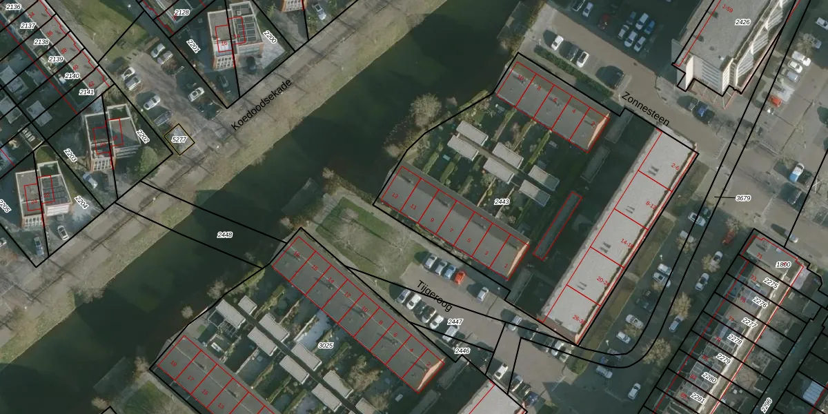Het adres is gelegen op perceel 2443 in de sectie B en de kadastrale gemeente Rhoon. De kadastrale aanduiding is aldus RHO00-B-2443. Het perceel is met 2908 m² relatief groot. Het gemiddelde ligt in de kadastrale gemeente Rhoon op 2330,74 m². De grootste perceeloppervlakte in de kadastrale gemeente is 42,1 ha. De kleinste oppervlakte bedraagt 0 m². Er zijn 27 adressen aanwezig op het perceel. In de Basisregistratie Kadaster (BRK) werden de grenzen van het perceel geregistreerd op 10-12-2010.