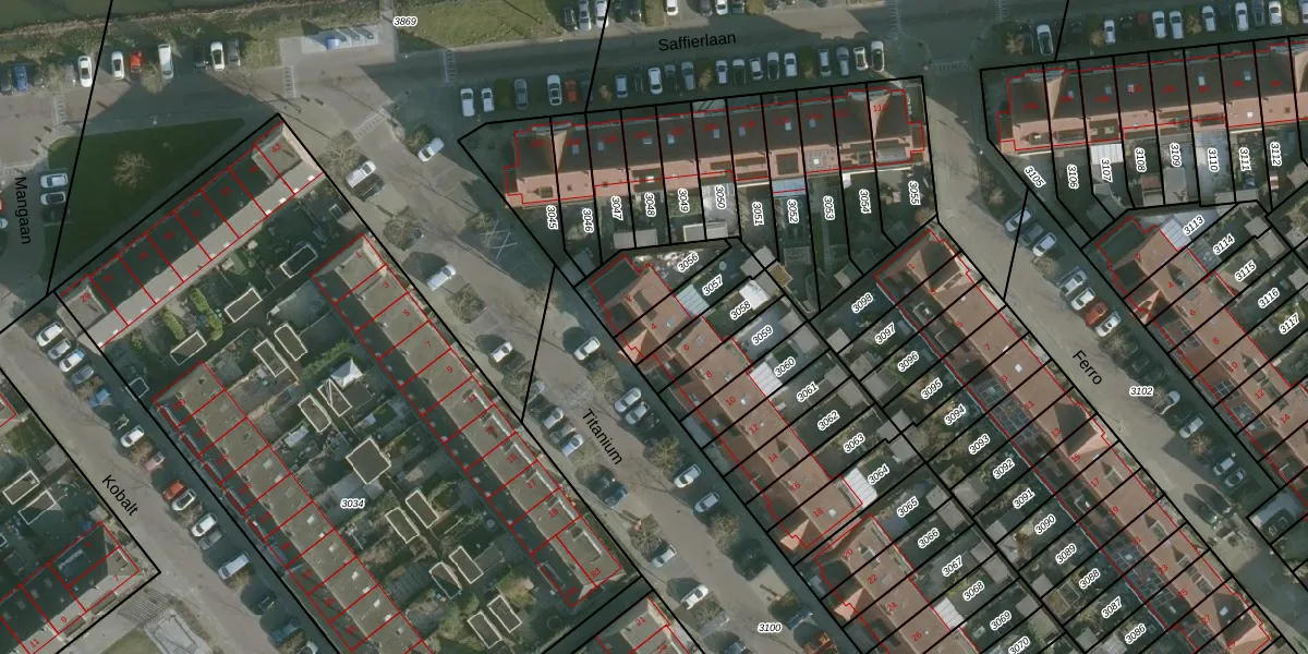 Gebruik de zoekbalk of klik op een perceel voor informatie over de adressen binnen dit perceel.
