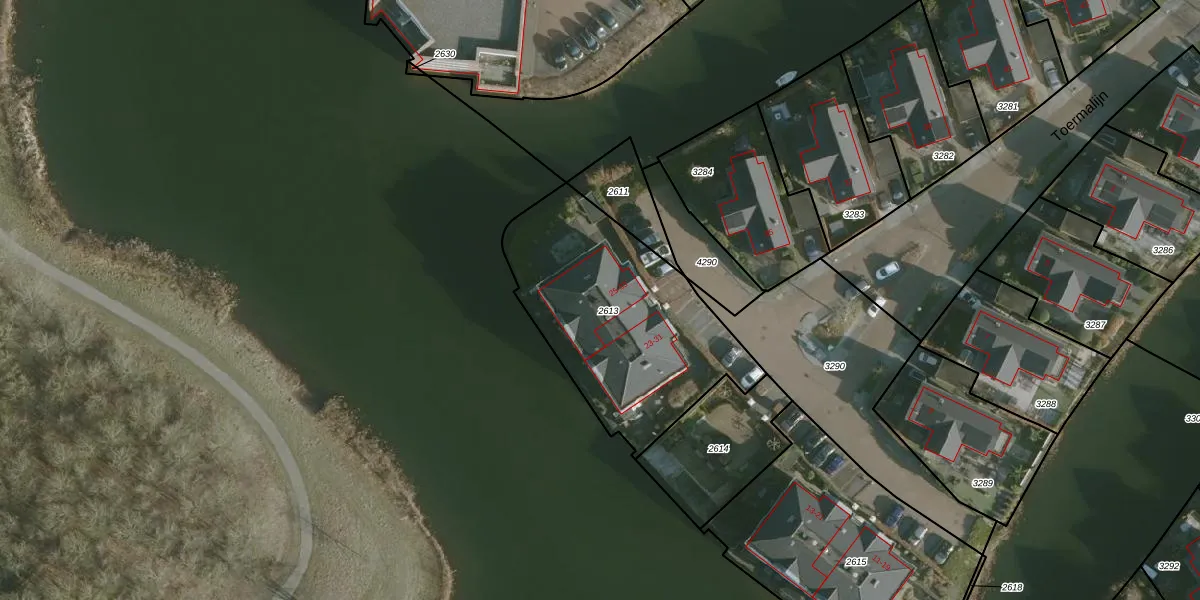 Het perceel waarop Toermalijn 29 staat heeft een oppervlakte van 985 m². Dit is een groot perceel. De perceeloppervlakte wordt geregistreerd door het Kadaster. Gedetailleerde informatie over de maten van dit perceel kunt u vinden in het rapport Kadastrale kaart met maatvoering van Toermalijn 29.