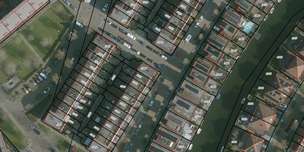 Het perceel waarop Topaaslaan 48 staat heeft een oppervlakte van 156 m². Dit is een middelgroot perceel. De perceeloppervlakte wordt geregistreerd door het Kadaster. Gedetailleerde informatie over de maten van dit perceel kunt u vinden in het rapport Kadastrale kaart met maatvoering van Topaaslaan 48.