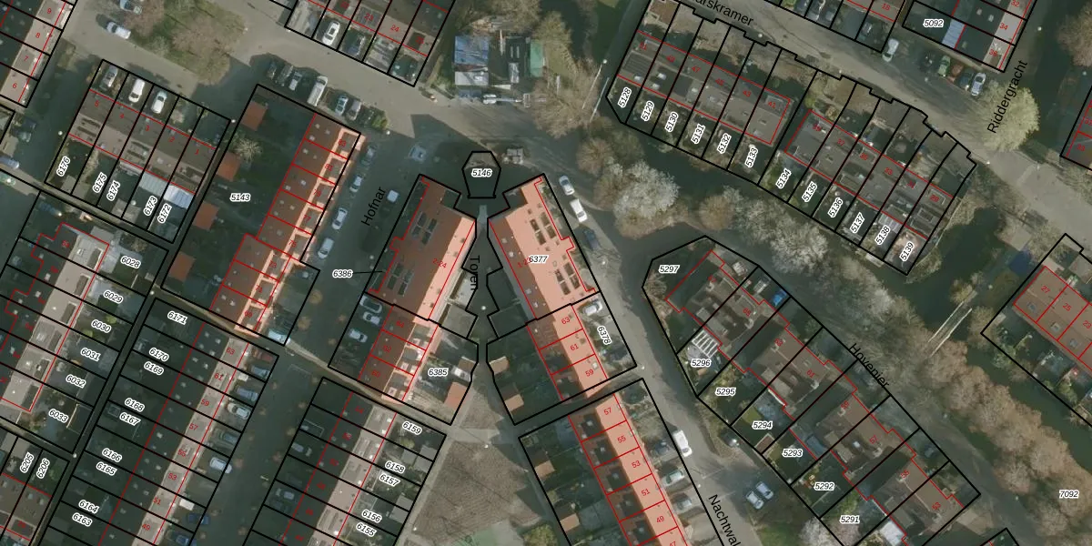 Het perceel waarop Toren 13 staat heeft een oppervlakte van 374 m². Dit is een groot perceel. De perceeloppervlakte wordt geregistreerd door het Kadaster. Gedetailleerde informatie over de maten van dit perceel kunt u vinden in het rapport Kadastrale kaart met maatvoering van Toren 13.