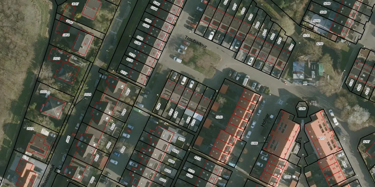 Troubadour 3 is gelegen op kadastraal perceel RHO00A6174. Deze kadastrale aanduiding is uniek en wordt gebruikt door het Kadaster om eigendomsrechten en andere zakelijke rechten vast te leggen. Het perceel maakt onderdeel uit van de kadastrale gemeente Rhoon.