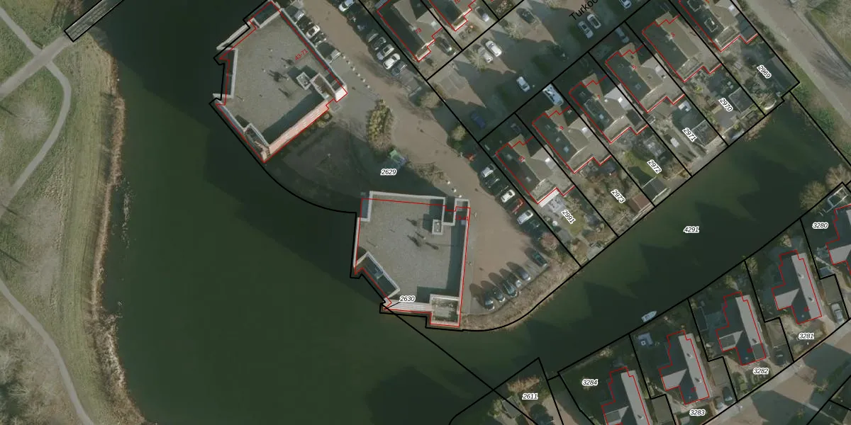 Het perceel waarop Turkoois 19 staat heeft een oppervlakte van 3645 m². Dit is een zeer groot perceel. De perceeloppervlakte wordt geregistreerd door het Kadaster. Gedetailleerde informatie over de maten van dit perceel kunt u vinden in het rapport Kadastrale kaart met maatvoering van Turkoois 19.