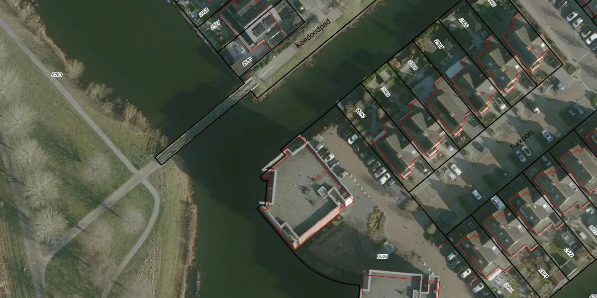 Het perceel waarop Turkoois 43 staat heeft een oppervlakte van 3645 m². Dit is een zeer groot perceel. De perceeloppervlakte wordt geregistreerd door het Kadaster. Gedetailleerde informatie over de maten van dit perceel kunt u vinden in het rapport Kadastrale kaart met maatvoering van Turkoois 43.