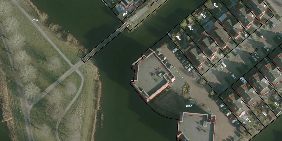 Het perceel waarop Turkoois 57 staat heeft een oppervlakte van 3645 m². Dit is een zeer groot perceel. De perceeloppervlakte wordt geregistreerd door het Kadaster. Gedetailleerde informatie over de maten van dit perceel kunt u vinden in het rapport Kadastrale kaart met maatvoering van Turkoois 57.