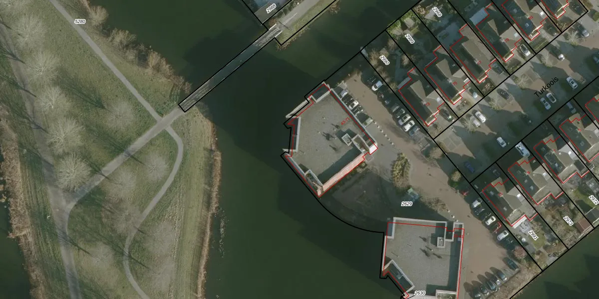 Het perceel waarop Turkoois 65 staat heeft een oppervlakte van 3645 m². Dit is een zeer groot perceel. De perceeloppervlakte wordt geregistreerd door het Kadaster. Gedetailleerde informatie over de maten van dit perceel kunt u vinden in het rapport Kadastrale kaart met maatvoering van Turkoois 65.