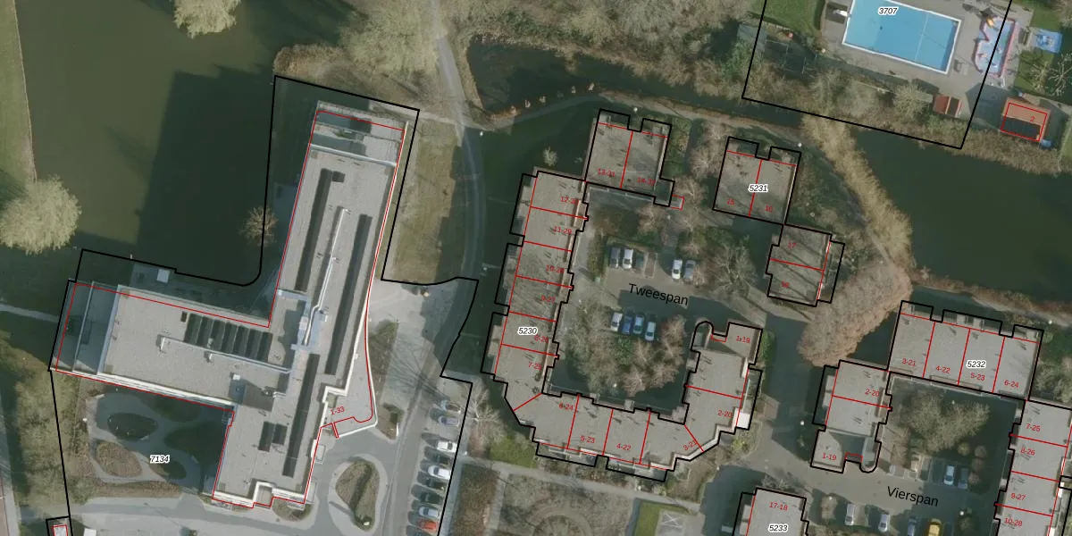 Het perceel waarop Tweespan 28 staat heeft een oppervlakte van 1297 m². Dit is een zeer groot perceel. De perceeloppervlakte wordt geregistreerd door het Kadaster. Gedetailleerde informatie over de maten van dit perceel kunt u vinden in het rapport Kadastrale kaart met maatvoering van Tweespan 28.