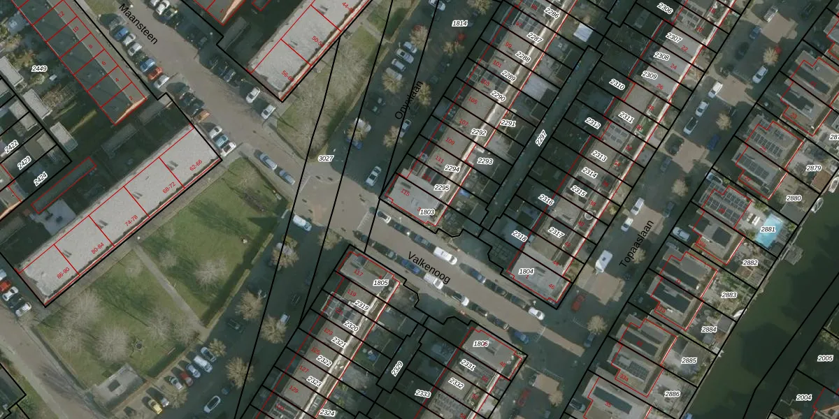 Het perceel waarop Valkenoog 3 staat heeft een oppervlakte van 156 m². Dit is een middelgroot perceel. De perceeloppervlakte wordt geregistreerd door het Kadaster. Gedetailleerde informatie over de maten van dit perceel kunt u vinden in het rapport Kadastrale kaart met maatvoering van Valkenoog 3.