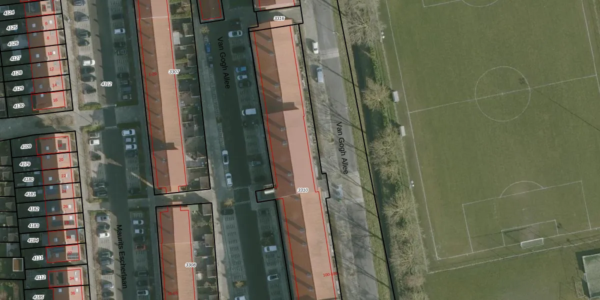 Van Gogh Allee 116 is gelegen op kadastraal perceel RHO00B3310. Deze kadastrale aanduiding is uniek en wordt gebruikt door het Kadaster om eigendomsrechten en andere zakelijke rechten vast te leggen. Het perceel maakt onderdeel uit van de kadastrale gemeente Rhoon.