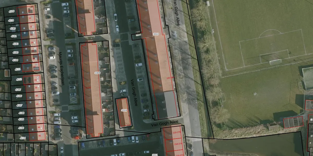 Van Gogh Allee 162 is gelegen op kadastraal perceel RHO00B3310. Deze kadastrale aanduiding is uniek en wordt gebruikt door het Kadaster om eigendomsrechten en andere zakelijke rechten vast te leggen. Het perceel maakt onderdeel uit van de kadastrale gemeente Rhoon.
