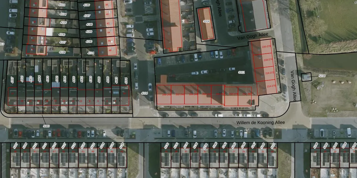 Van Gogh Allee 246 is gelegen op kadastraal perceel RHO00B3311. Deze kadastrale aanduiding is uniek en wordt gebruikt door het Kadaster om eigendomsrechten en andere zakelijke rechten vast te leggen. Het perceel maakt onderdeel uit van de kadastrale gemeente Rhoon.