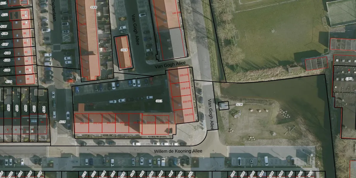 Van Gogh Allee 262 is gelegen op kadastraal perceel RHO00B3311. Deze kadastrale aanduiding is uniek en wordt gebruikt door het Kadaster om eigendomsrechten en andere zakelijke rechten vast te leggen. Het perceel maakt onderdeel uit van de kadastrale gemeente Rhoon.