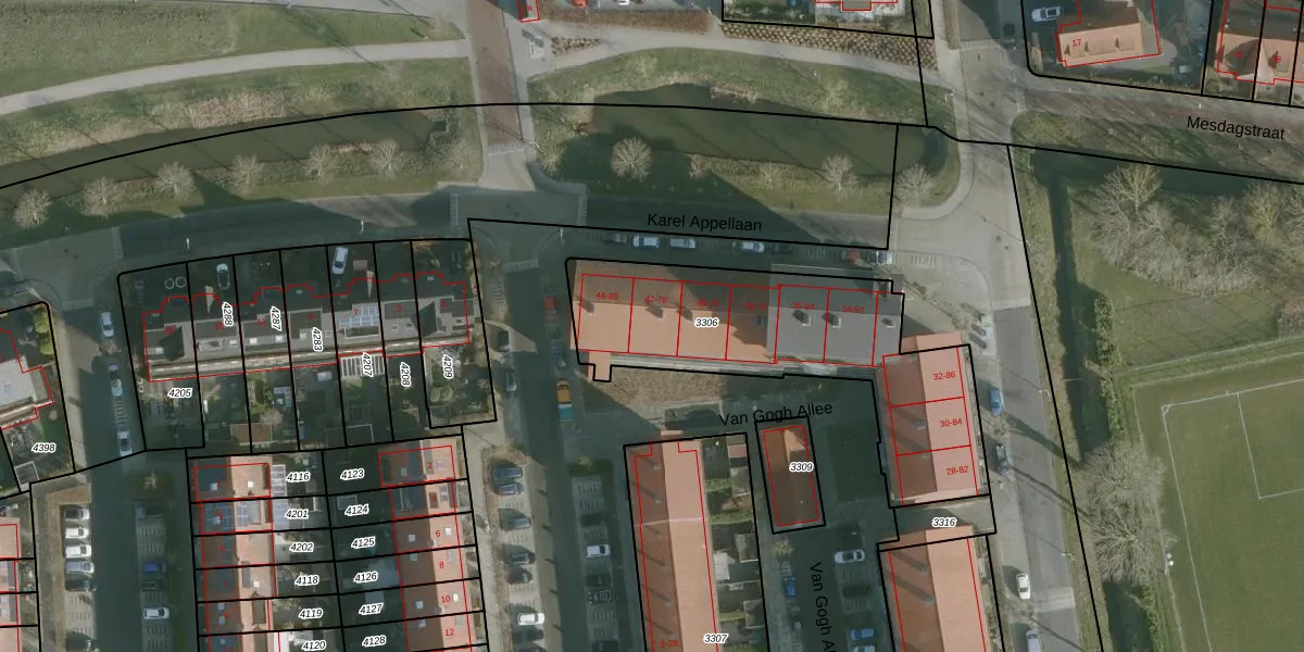 Van Gogh Allee 42 is gelegen op kadastraal perceel RHO00B3306. Deze kadastrale aanduiding is uniek en wordt gebruikt door het Kadaster om eigendomsrechten en andere zakelijke rechten vast te leggen. Het perceel maakt onderdeel uit van de kadastrale gemeente Rhoon.