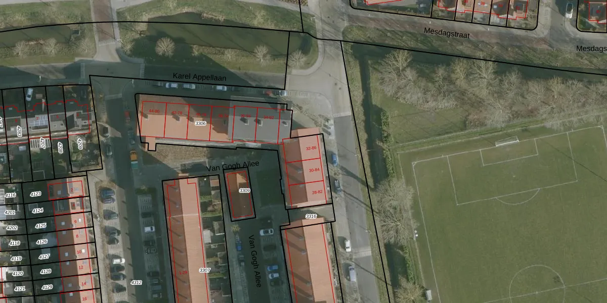 Van Gogh Allee 50 is gelegen op kadastraal perceel RHO00B3306. Deze kadastrale aanduiding is uniek en wordt gebruikt door het Kadaster om eigendomsrechten en andere zakelijke rechten vast te leggen. Het perceel maakt onderdeel uit van de kadastrale gemeente Rhoon.