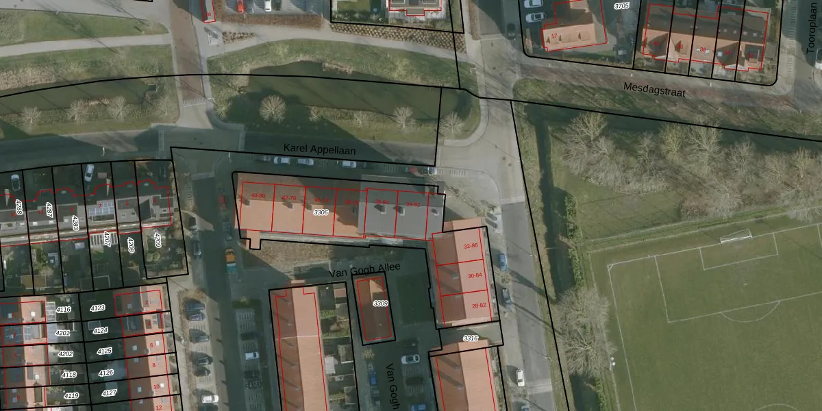 Van Gogh Allee 88 is gelegen op kadastraal perceel RHO00B3306. Deze kadastrale aanduiding is uniek en wordt gebruikt door het Kadaster om eigendomsrechten en andere zakelijke rechten vast te leggen. Het perceel maakt onderdeel uit van de kadastrale gemeente Rhoon.