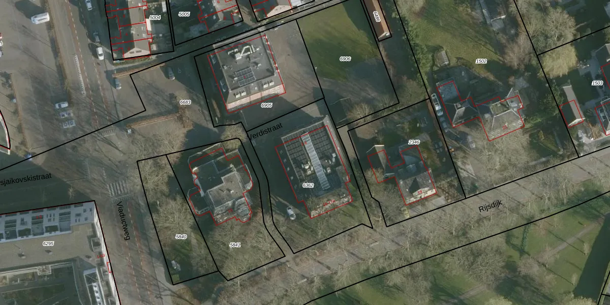 Het perceel waarop Verdistraat 2 staat heeft een oppervlakte van 1216 m². Dit is een zeer groot perceel. De perceeloppervlakte wordt geregistreerd door het Kadaster. Gedetailleerde informatie over de maten van dit perceel kunt u vinden in het rapport Kadastrale kaart met maatvoering van Verdistraat 2.