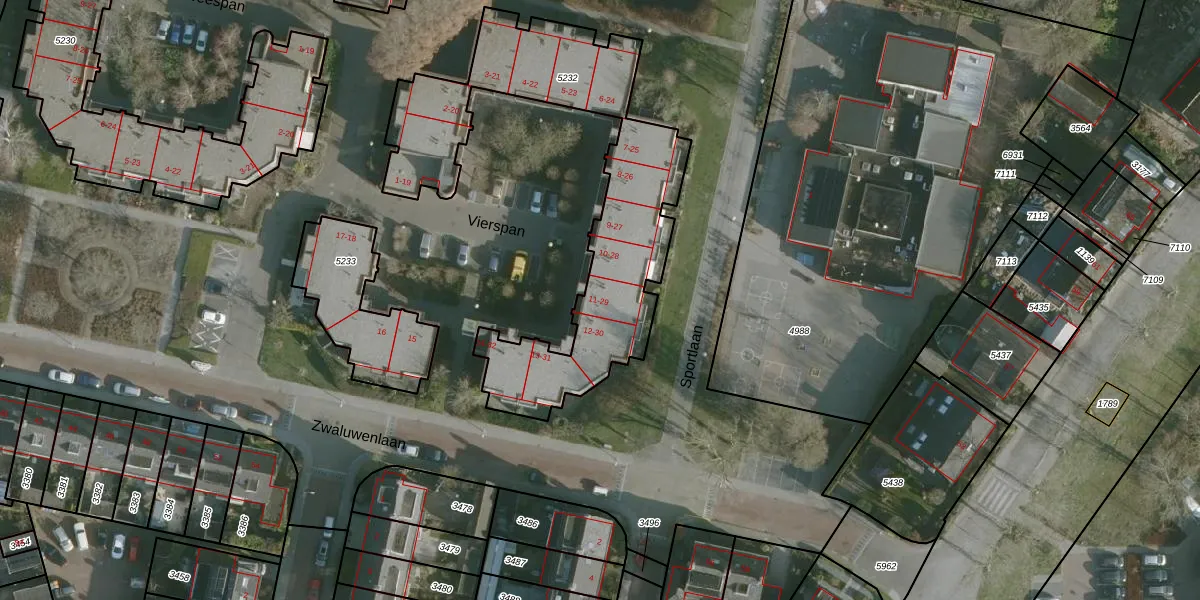 Het perceel waarop Vierspan 11 staat heeft een oppervlakte van 1275 m². Dit is een zeer groot perceel. De perceeloppervlakte wordt geregistreerd door het Kadaster. Gedetailleerde informatie over de maten van dit perceel kunt u vinden in het rapport Kadastrale kaart met maatvoering van Vierspan 11.