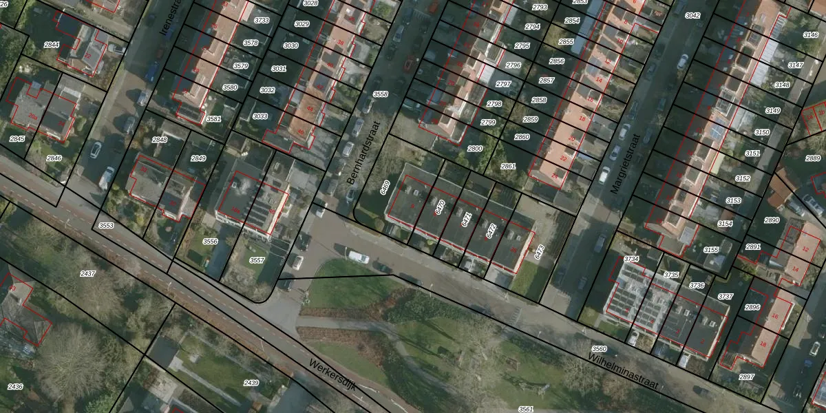 Het perceel waarop Wilhelminastraat 9 staat heeft een oppervlakte van 346 m². Dit is een groot perceel. De perceeloppervlakte wordt geregistreerd door het Kadaster. Gedetailleerde informatie over de maten van dit perceel kunt u vinden in het rapport Kadastrale kaart met maatvoering van Wilhelminastraat 9.