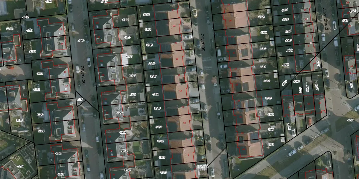 Gebruik de zoekbalk of klik op een perceel voor informatie over de adressen binnen dit perceel.